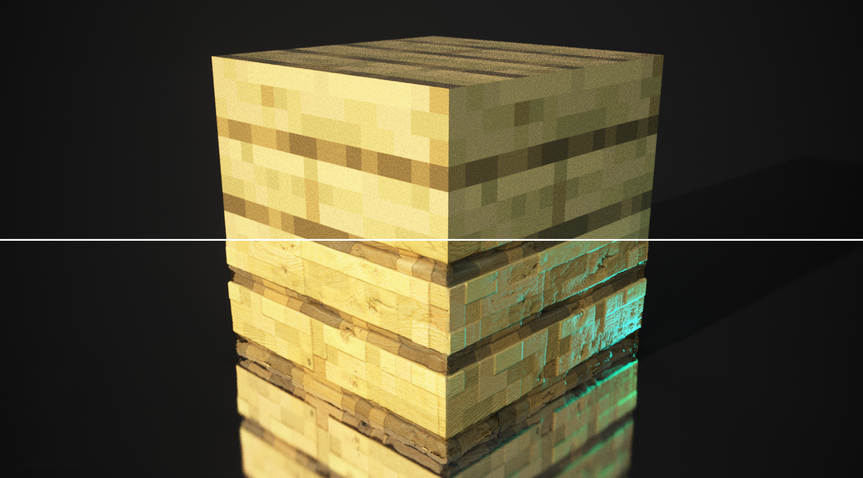 It keeps the vanilla aesthetics but has very detailed features with shadows, highlights, reflections, depth.